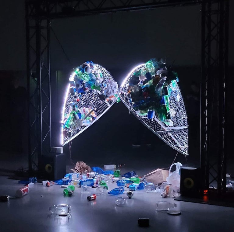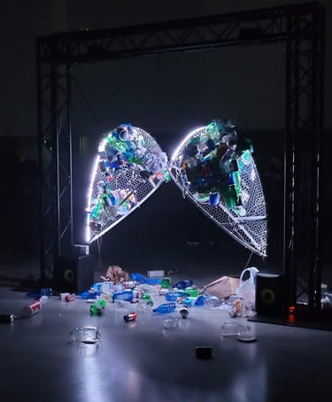Inspired by the issue of ocean plastic, this interactive piece combines projection, sensors, and sound to immerse participants in the reality of pollution. It transforms data and imagery into an emotional experience that sparks reflection on our impact.
